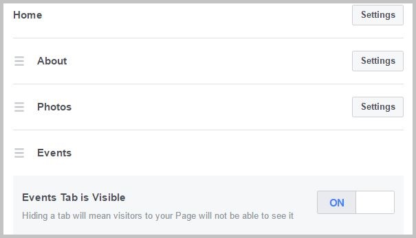 In other words: If you put the Photos tab at the top of the list, your latest pics will show right under your profile picture. If you put Events up top, visitors will see the event and your “Buy Tickets” CTA button first. You don’t have to pin one post and hope for the best! You can show viewers exactly what you want them to see! O, frabjous day.
