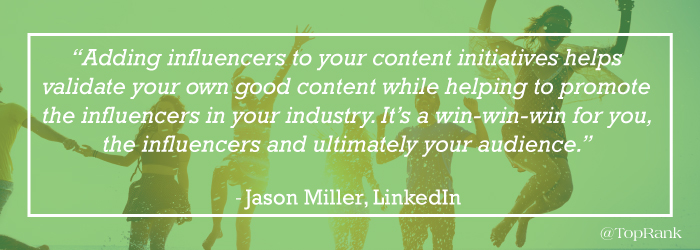 “Adding influencers helps validate your content while helping to promote influencers in your industry.” – Jason Miller, LinkedIn