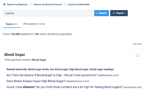 BuzzSumo has been around for a while, but their Question Analyzer was just released in 2017 and it can help you ensure that the content you’re creating serves a real, specific need. Just enter in a keyword you want to target, and BuzzSumo will scour online forums, social media, Amazon, and Q&A sites to surface the most popular questions people ask using that term or phrase.
