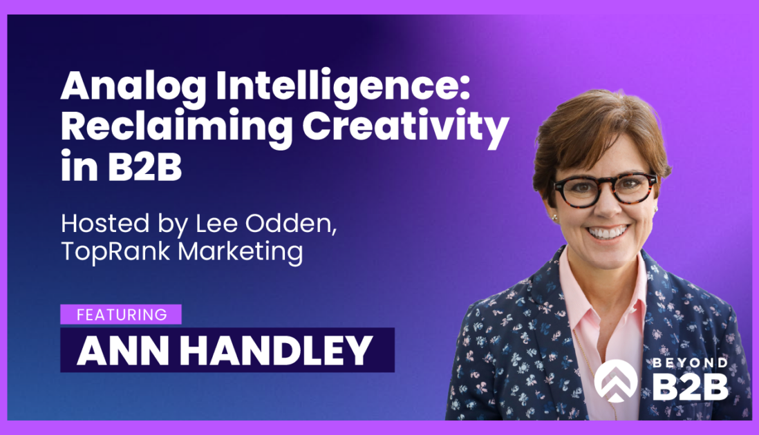 In this episode of Beyond B2B Marketing, TopRank Marketing CEO Lee Odden talks with Ann Handley, Chief Content Officer at MarketingProfs and one of the most influential voices in modern marketing. Ann introduces her concept of Analog Intelligence, a creative counterbalance to the hyper-efficiency of AI.